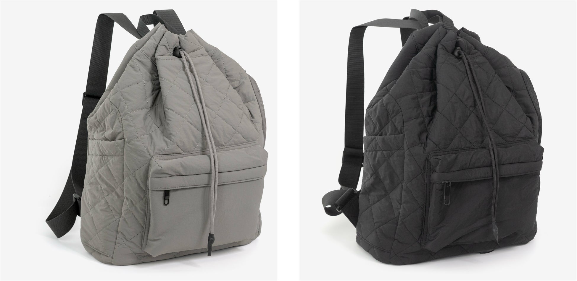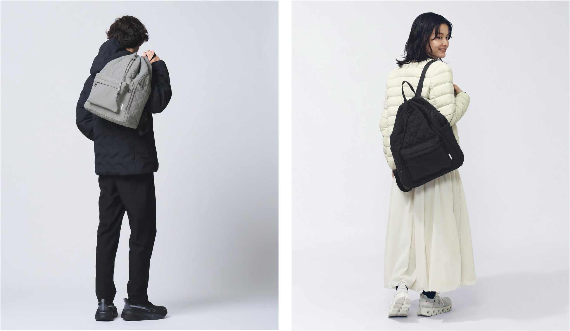 今回の秋冬展開では、キルティング素材を使用し、上質な見た目に仕上げました。また、コーディネートしやすいブラックとグレーのカラー展開のため、女性も取り入れやすいアイテムです。スウェットやセーター、ダウン等の秋冬の装いにも合わせやすいデザインです。