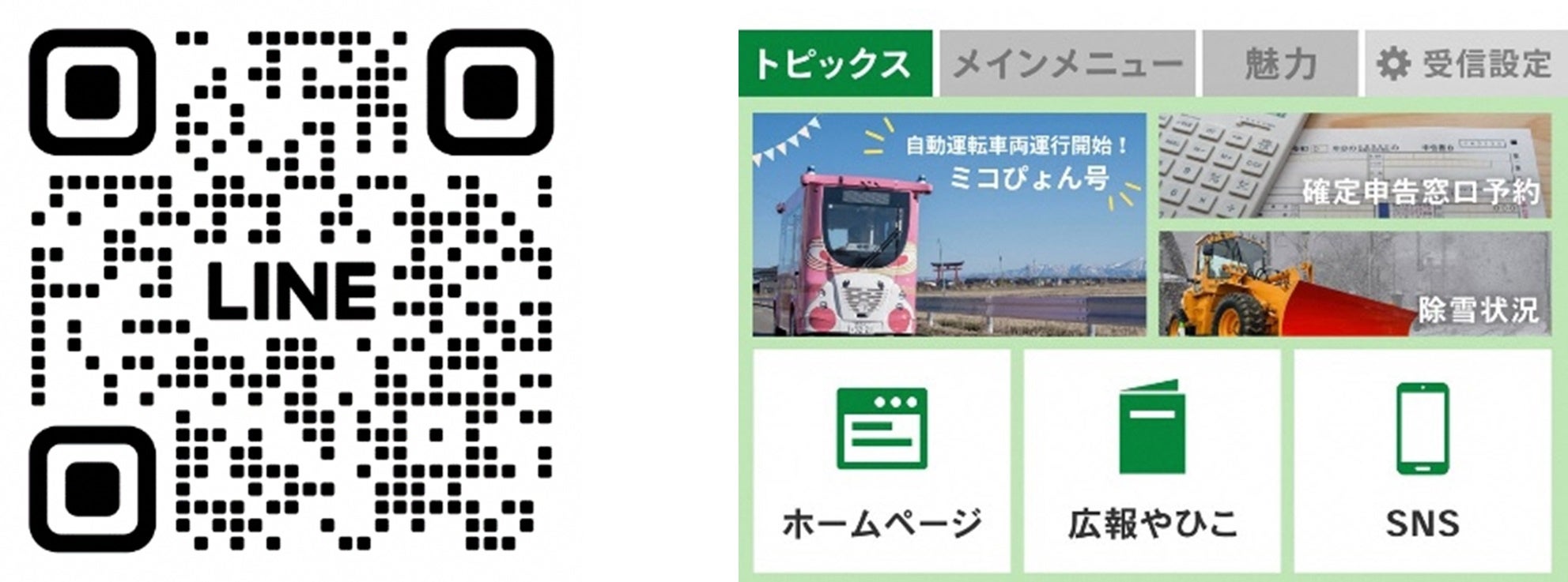 弥彦村のLINE公式アカウントでは、「MiCa」の運行状況やダイヤを確認できます(2月1日以降予定)。QRコードから“友だち登録”を行うことができます。