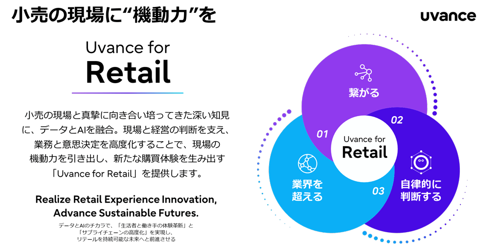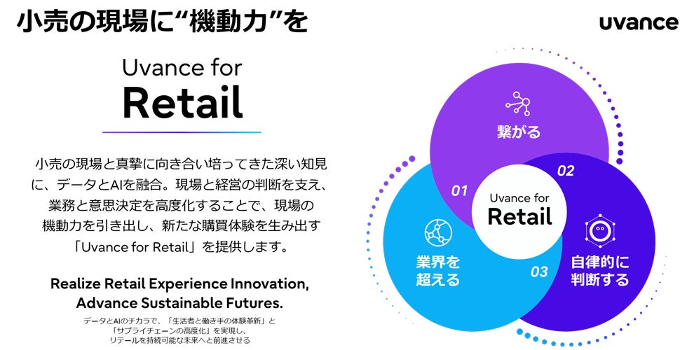 当社は、「Uvance for Retail」を通じて、生活者と働き手の体験革新とサプライチェーンの高度化を実現し、リテールの未来を前進させていきます。