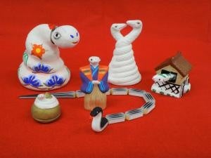 内容:来年の干支「蛇」をモチーフにした土人形や張り子、土鈴など郷土玩具の展示