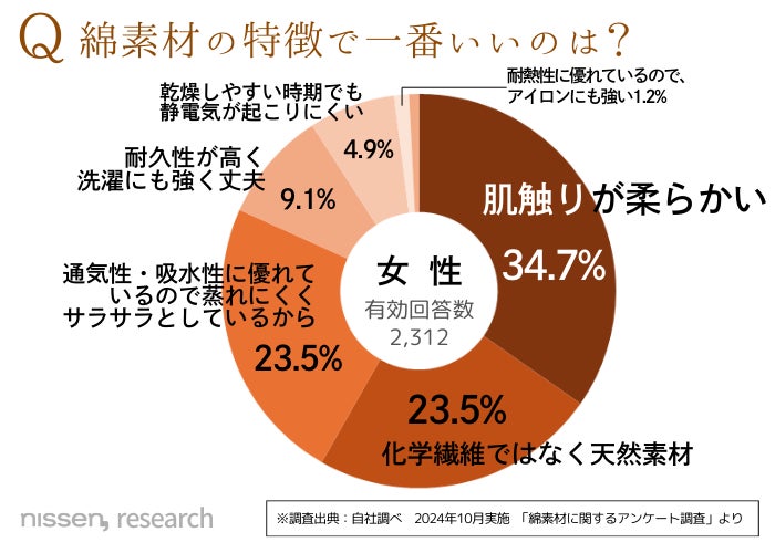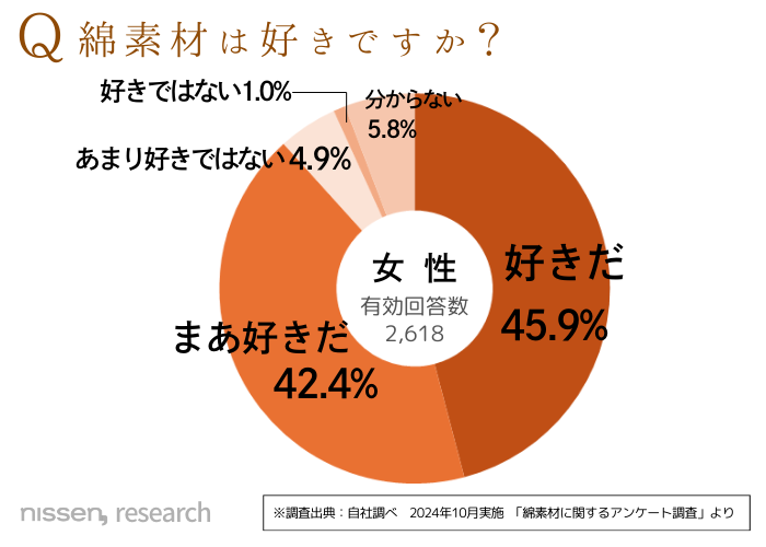 涼しくなりはじめたこの時期にご紹介するのは「綿素材に関するアンケート」の調査結果と、シリーズ累計販売枚数が15万枚(※)を突破した『オーガニックコットン』シリーズの中から人気商品をご紹介します。なお、商品はニッセンオンラインショップ(https://www.nissen.co.jp/)でシリーズ全商品をご覧いただけます。