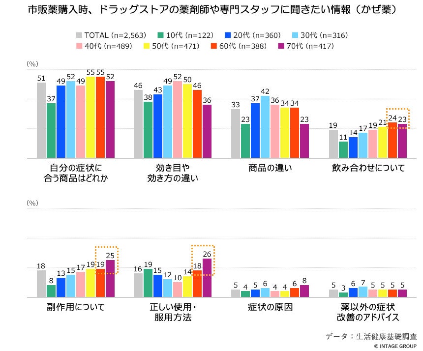 10~70歳代の男女2,563人に調査 市販薬購入時にドラッグストアで聞きたいこと