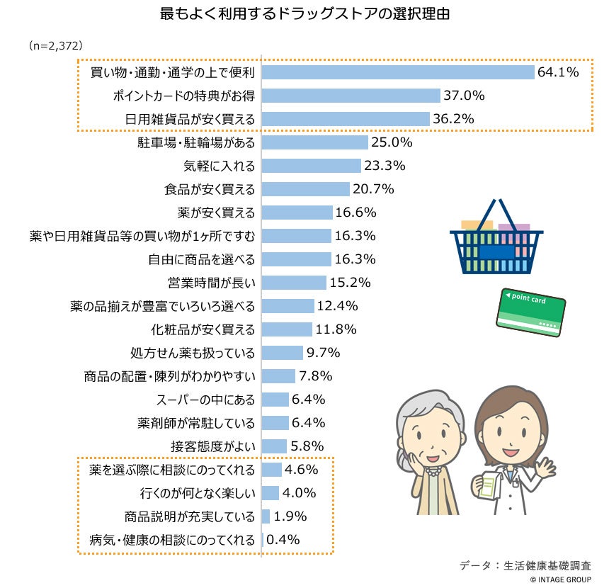 ドラッグストアを選ぶ理由は、「立地の良さ」と「お得感」!