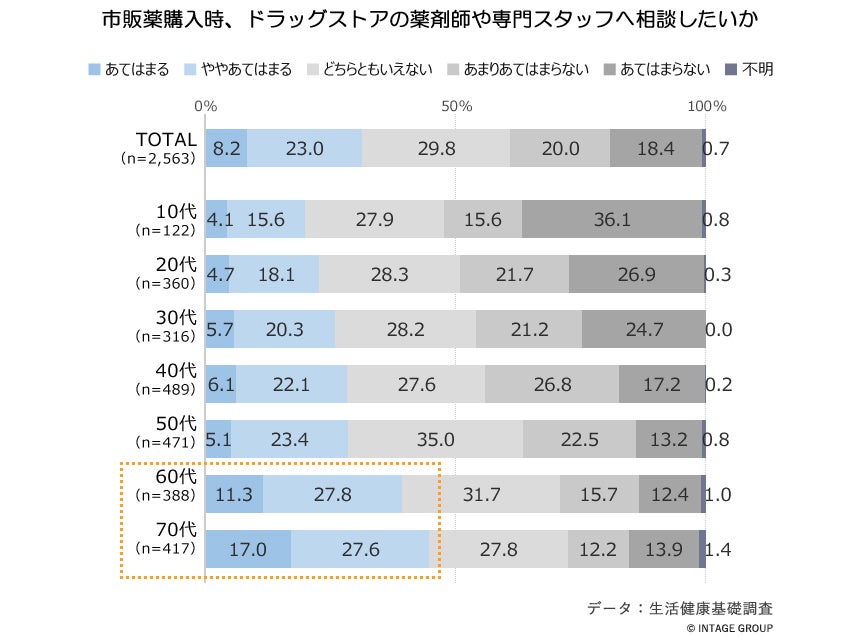 市販薬購入時に、薬剤師や専門スタッフに相談したい人は、高齢層で約4割!
