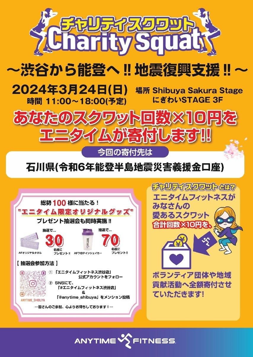 2024年3月24日(日)、"渋谷から能登へ!地震復興支援チャリティスクワット"を実施いたします。
