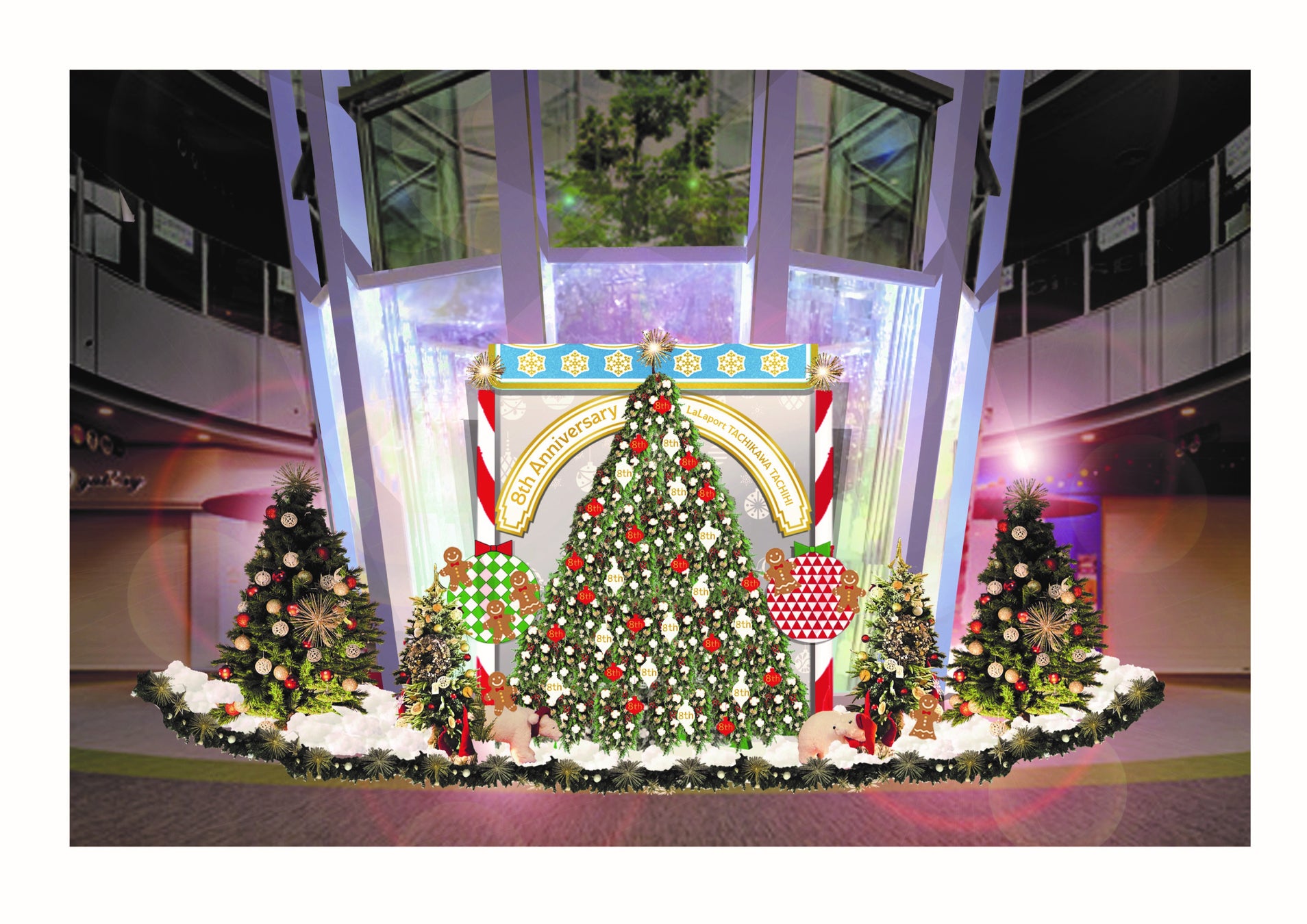 「ららぽーと立川立飛 8th Birthday Festa」は、お買物券がお得に買えるお買物券販売会や、豪華景品が当たる抽選会などおトクなキャンペーンに加え、週末にはお子様と楽しめるイベントを多数開催します。さらに8周年をお祝いするクリスマスオブジェも登場いたします!