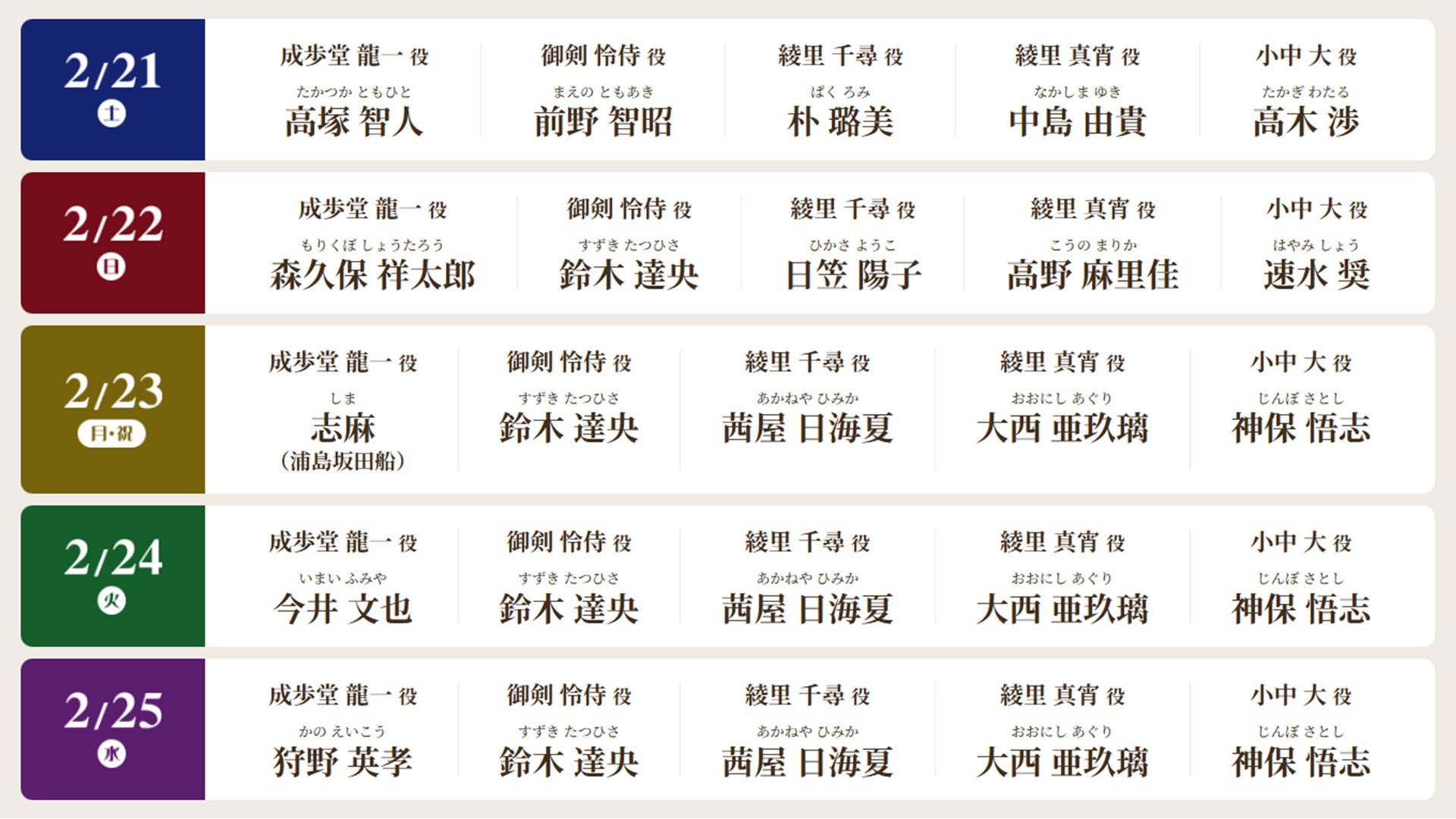・出演(※出演日ごと五十音順)