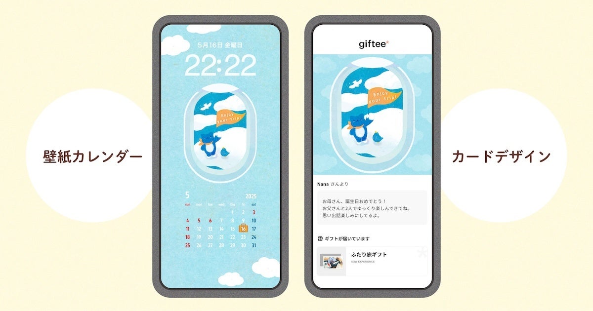〈毎月1日、誰かにキモチを贈りたくなる「◯◯の日」を公開!〉“記念日”にちなんだ「giftee®」オリジナルのスマホ用壁紙カレンダー「おくりものカレンダー」2025年「5月16日(金)は『旅の日』」