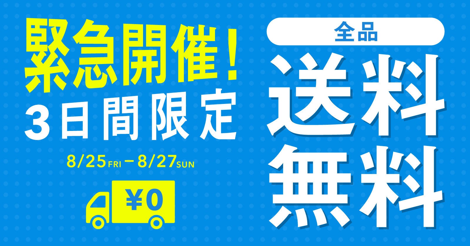 本日より3日間の期間限定で、全商品送料無料キャンペーンを実施中!