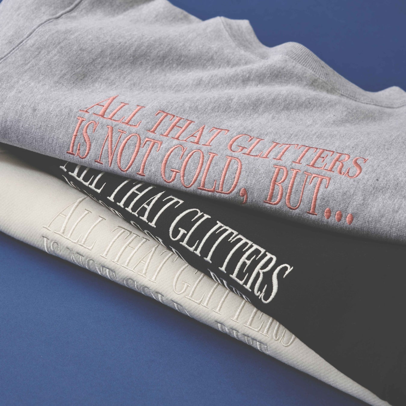 英語のことわざ『光るもの全てが金とは限らない ”外見の良さで中 身を見誤るな”』の最後にbutをつけたオリジナルのメッセージで、 『美しければ必ず価値があるとは限らない、だがしかし “美しさもまた価値である』という思いが込められています。