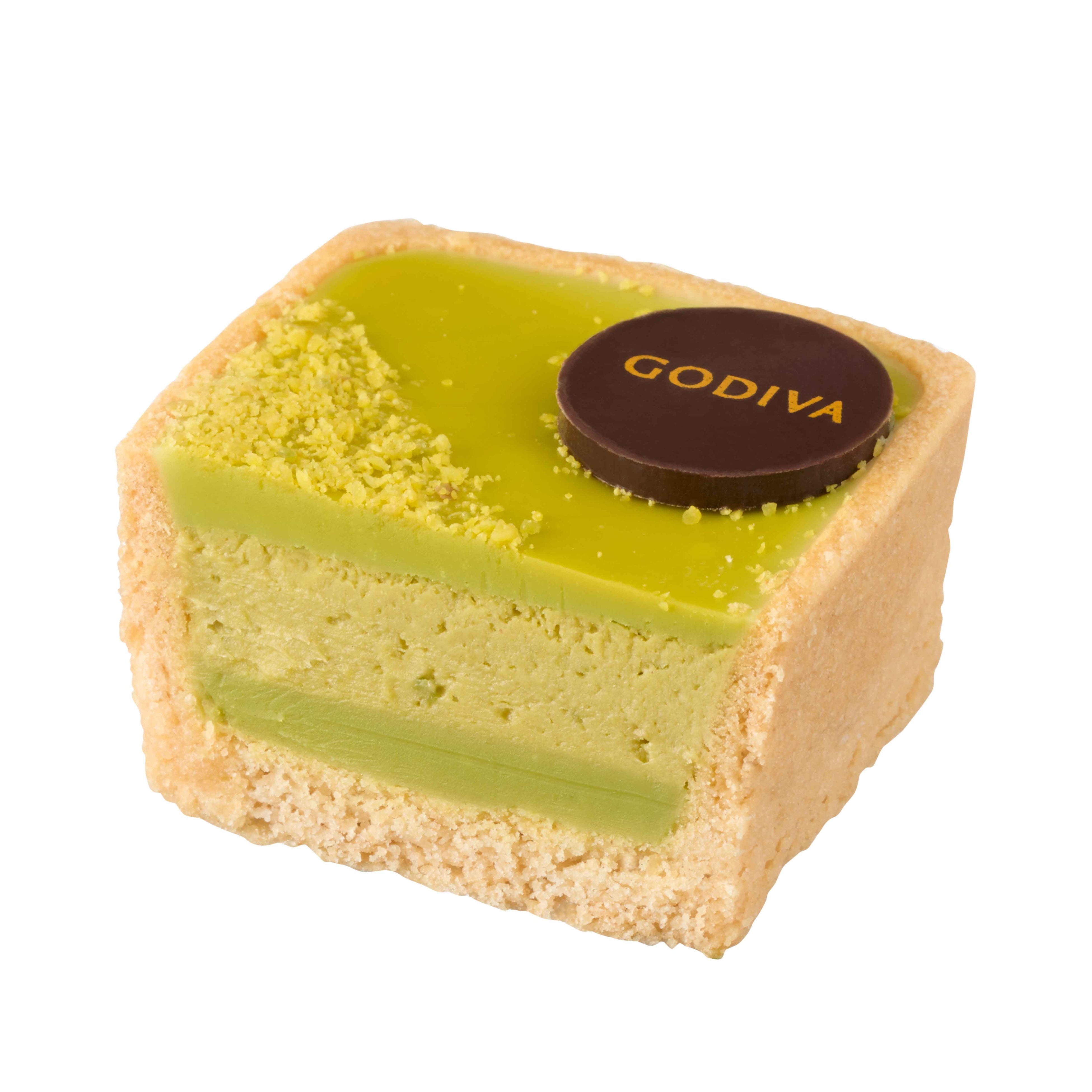 ピスタチオを使用したフィリングとムースの層を、プレーンのタルト生地で包みました。クラッシュしたローストピスタチオを上から飾り、ピスタチオの豊かな風味と食感が存分に楽しめるひと粒です。チョコレートもピスタチオの色で仕上げました。