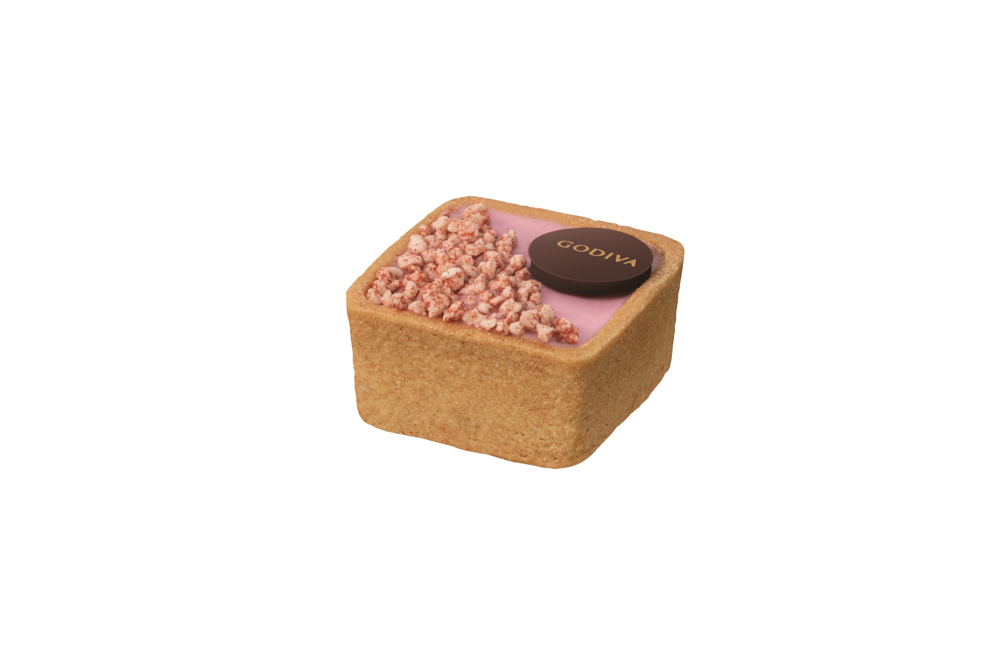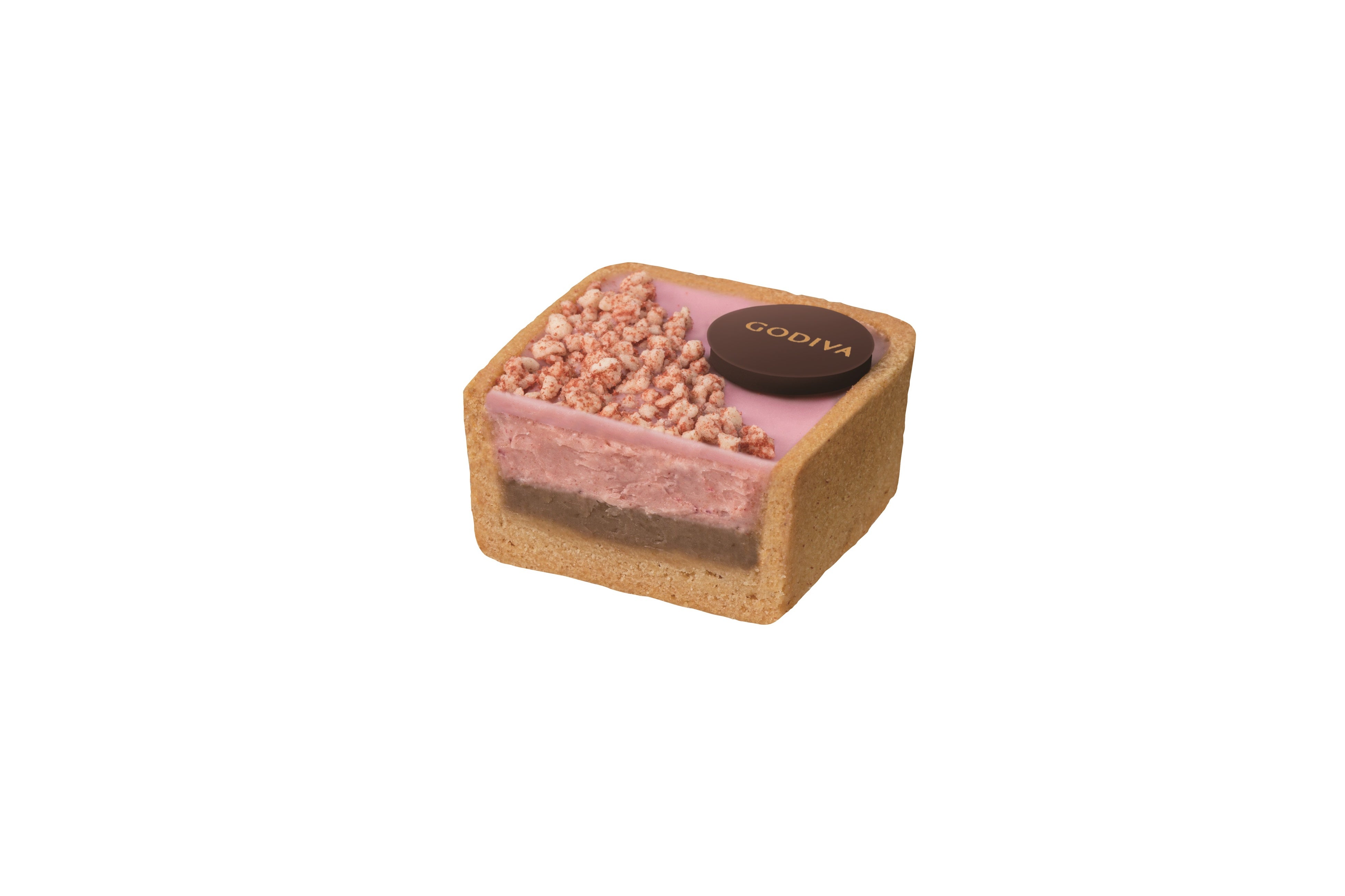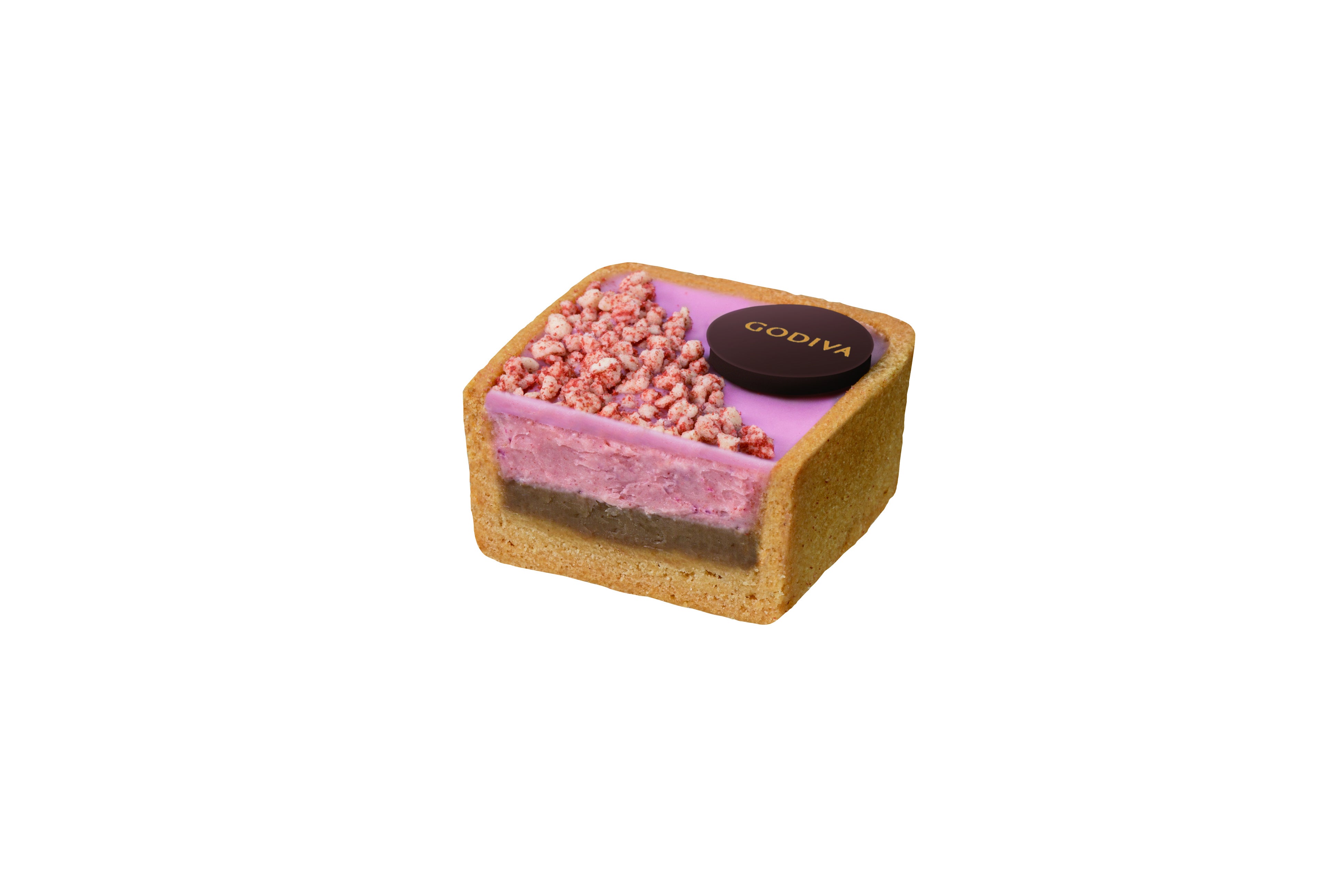 ミルクチョコレートにストロベリームースを重ね、ピンク色のホワイトチョコレートで閉じ込めて、プレーンのタルト生地で包みました。ストロベリークランブルの甘酸っぱい風味をお楽しみください。