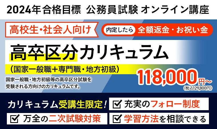 「高卒区分カリキュラム(国家一般職+専門職・地方初級)」は、
