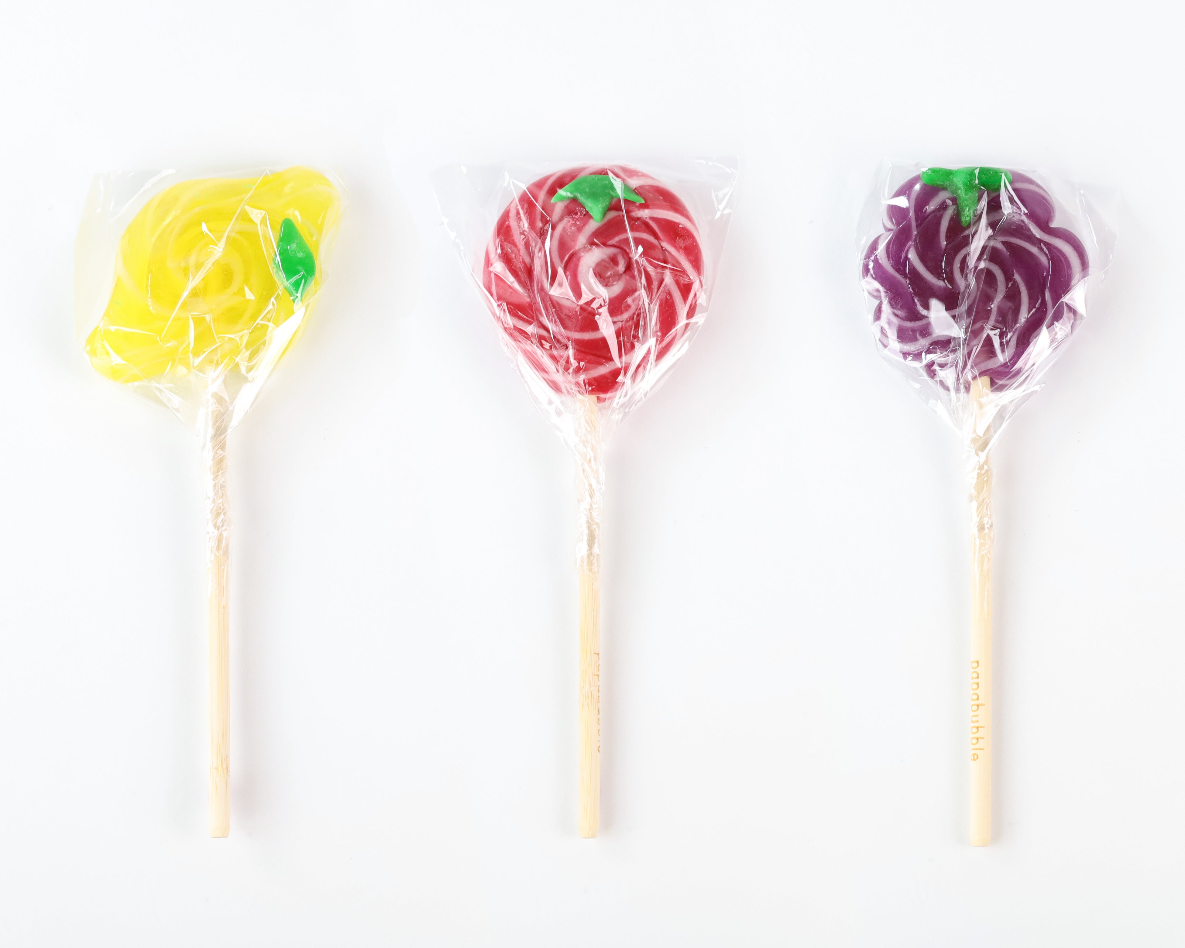 光にかざすと、つい眺めたくなるような透け感とツヤ。果実の瑞々しさをそのまま映したようなロリポップに仕上げました。ひと口かじると、まるで果実をかじったような、ピュアな味わいが広がります。