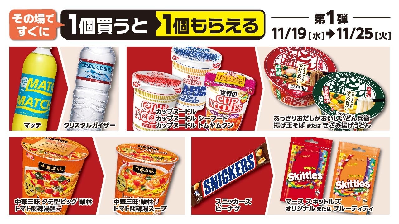株式会社ローソンストア100(神奈川県川崎市)が運営する「ローソンストア100」(611店舗/2025年10月末現在)は、新ストアコンセプト「あたらしい・おいしい・うれしい」の「おいしい」、「うれしい」の一環で、昨年11月に実施し大変ご好評いただいた「デカ盛りチャレンジ」と「1個買うと1個もらえる」企画を、2025年11月19日(火)から12月2日(月)までの14日間実施します。