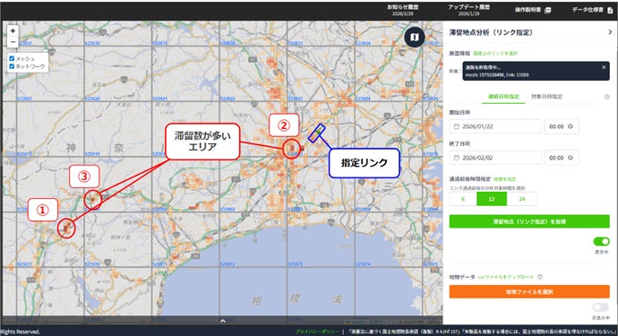 プローブデータ分析サービス、「滞留地点分析」機能を追加。道路単位からエリア全体までを面で把握でき、交通実態をより多角的に分析可能に