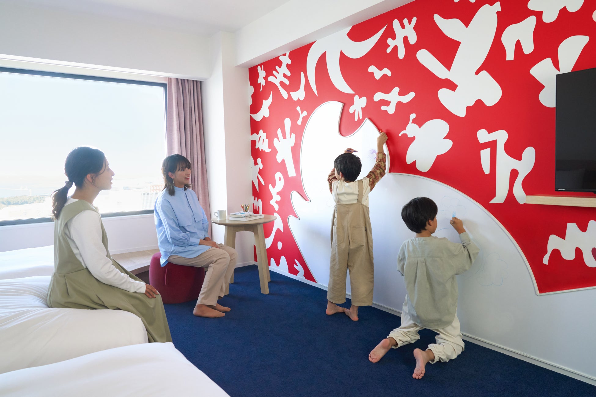 クレヨンで壁や窓一面に思い切りお絵かきができる「アトリエルーム」など趣向を凝らしたコンセプトルームが充実。お子様は、お部屋にいるときも楽しく遊びこめます。全室禁煙・土足禁止のため、小さなお子様も安心して過ごすことができます。