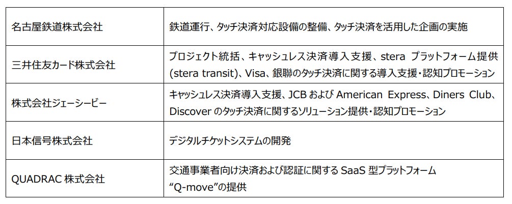 名古屋鉄道株式会社(本社:愛知県名古屋市、代表取締役社長:髙﨑 裕樹)、三井住友カード株式会社(本社:東京都江東区、代表取締役社長:大西 幸彦)、株式会社ジェーシービー(本社:東京都港区、代表取締役兼執行役員社長:二重 孝好)、日本信号株式会社(本社:東京都千代田区、代表取締役社長:塚本 英彦)、QUADRAC株式会社(本社:東京都港区、代表取締役社長:高田 昌幸)は、名古屋鉄道の一部駅において、三井住友カードが提供する公共交通機関向けソリューション「stera transit」を活用し実施している、タッチ決済対応のカード(クレジット、デビット、プリペイド)や、同カードが設定されたスマートフォン等を活用した、改札における運賃の支払いに関する実証実験の対象駅を2024年10月1日より3駅から拡大し、13駅で自動改札機でのタッチ決済による改札通過を可能とします。