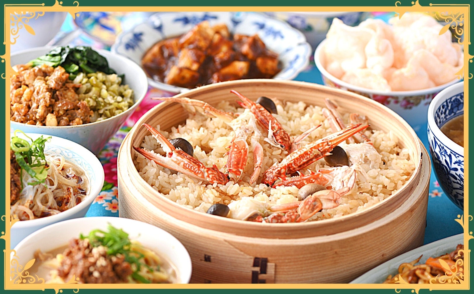 今回のフェアの一番の目玉商品は、台湾料理のごちそうメニューとして人気の『台湾風蟹おこわ』。