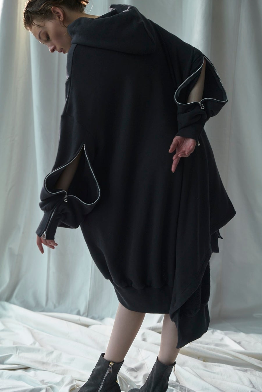 バレエの練習着からインスパイアされた可憐で軽快なムードに、REGLATION Yohji Yamamotoを象徴するモノクロームな色合いや、オーバーサイズのシルエット、スポーティーな素材を、実用的で日常的なスタイリングに落とし込んでいます。