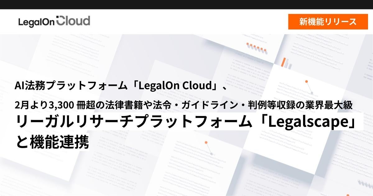 AI法務プラットフォーム「LegalOn Cloud」、2月より3,300 冊超の法律書籍や法令・ガイドライン・判例等収録の業界最大級リーガルリサーチプラットフォーム「Legalscape」と機能連携