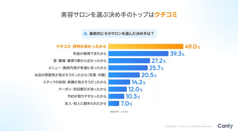 来店を決める最大の理由は、料金や立地を抑えて「クチコミ」が1位となっています。