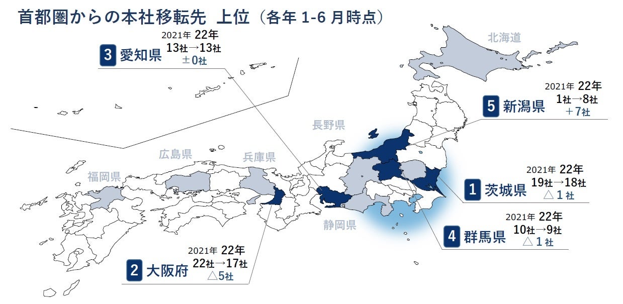首都圏・本社移転動向調査(2022年1-6月速報)
