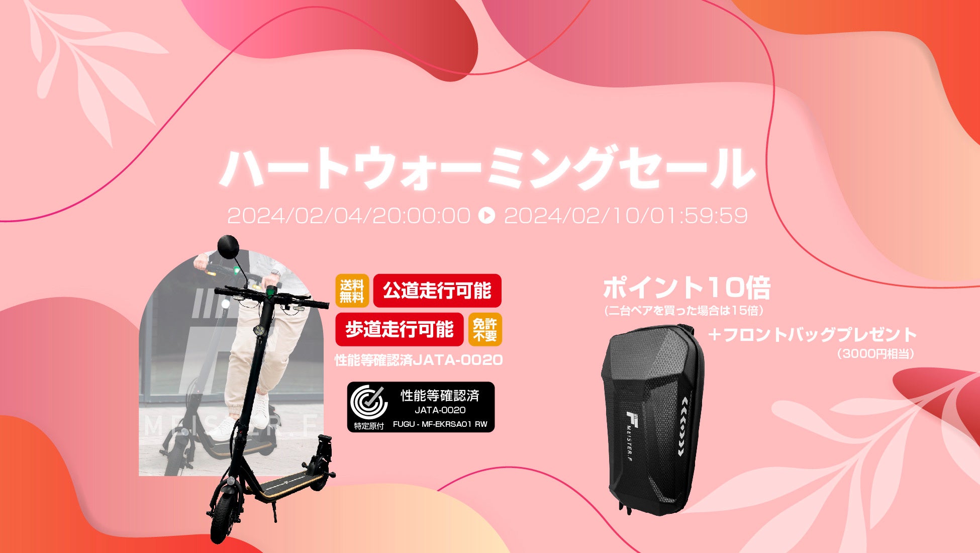 楽天「Show !t」は2月4日(日)から特定小型区分電動キックボード購入でお出かけに便利なフロントバッグプレゼントキャンペーンを実施。さらに、楽天お買い物マラソンに参加しポイント10倍プレゼント!