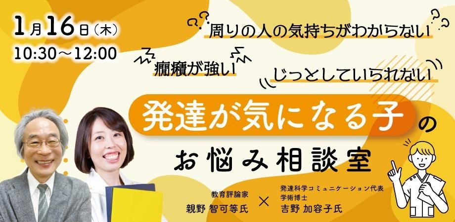 1/16 開催の花まる子育てカレッジ「発達が気になる子のお悩み相談室」に発達科学コミュニケーション代表吉野が、教育評論家親野智可等氏と登壇 〜お申込み&質問募集中〜