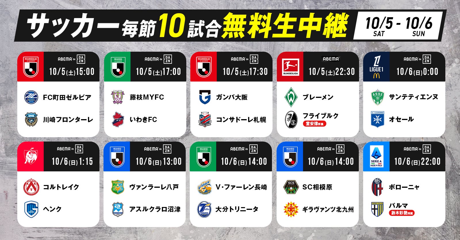 ■「ABEMA」、「ABEMA de DAZN」 無料放送スケジュール(10/5-10/6)※