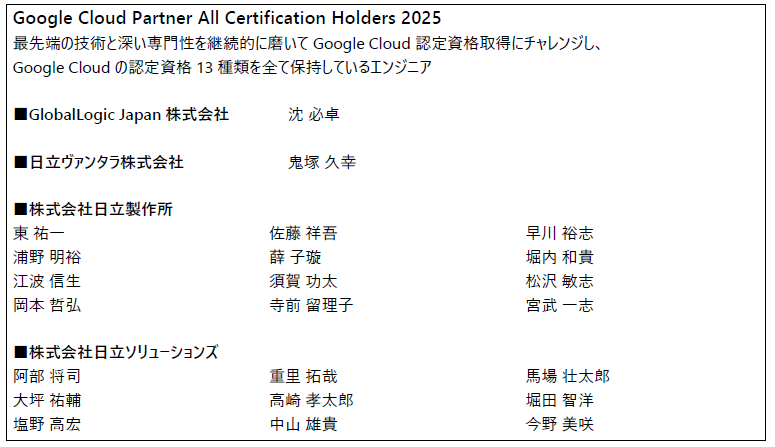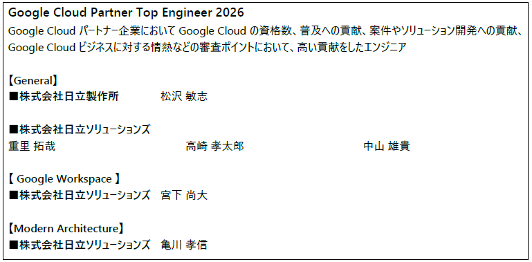 日立グループ社員延べ29名、Google Cloud Partner Top Engineer 2026 および Partner All Certification Holders 2025を受賞