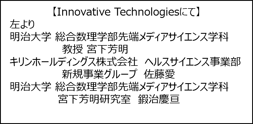 キリンホールディングス株式会社(社長 磯崎功典、以下キリン)と明治大学(学長 大六野耕作)総合数理学部先端メディアサイエンス学科の宮下芳明研究室は、11月16日(水)~18日(金)にかけて幕張メッセで開催された“INTER BEE IGNITION × DCEXPO”において、Innovative Technologies2022を受賞しました。Innovative Technologiesの受賞はキリンとしては初の快挙となります。