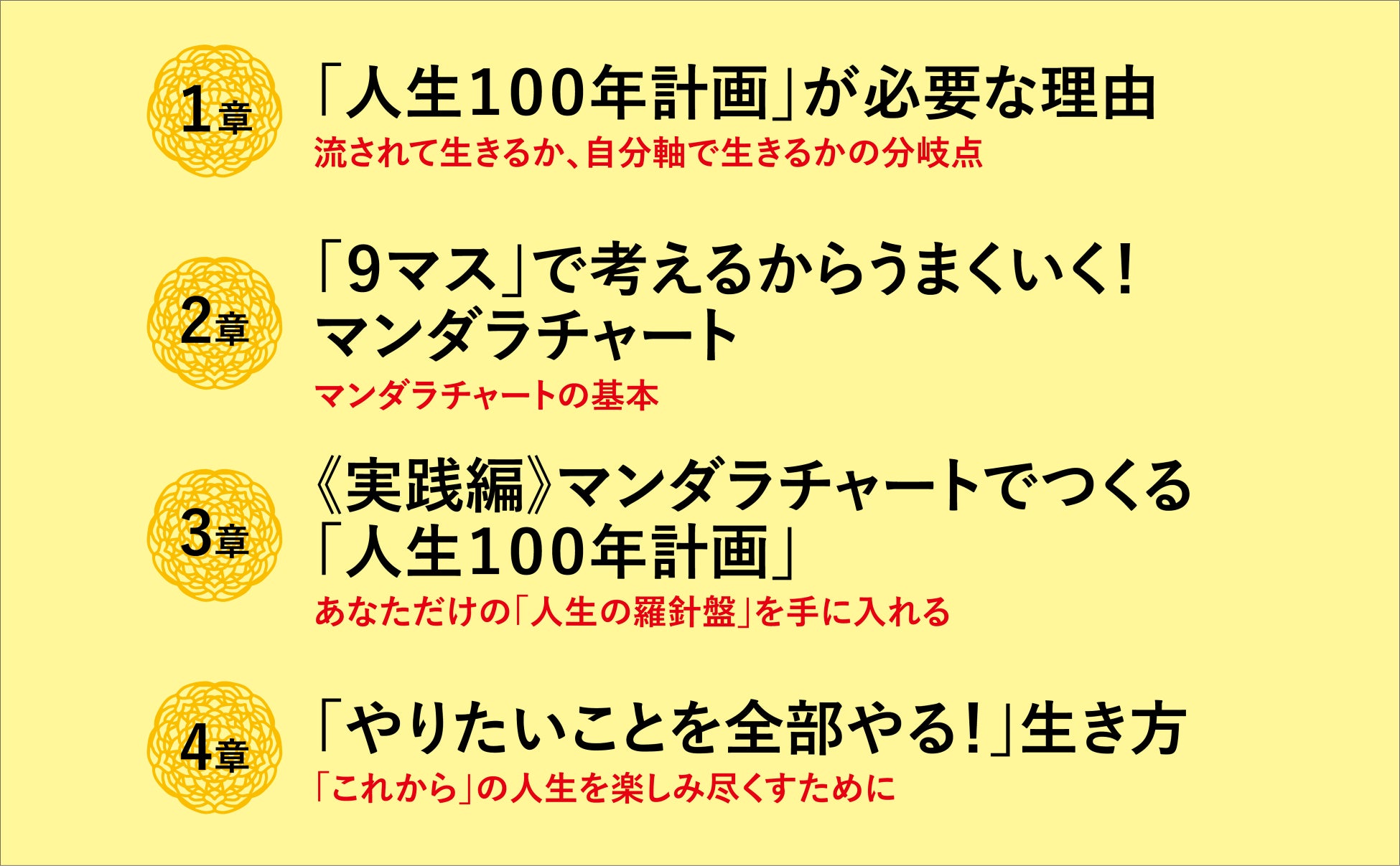 目の前のことをこなすだけの日々を送っていると、時間はどんどん過ぎていく。しかし、計画のない人生は、航海図のない旅と同じ。充実した人生を生きるためにぜひおすすめしたいのが、マンダラチャートを使った「人生100年計画」を立てること。