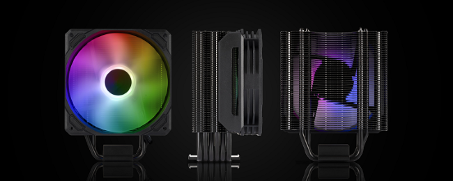 6本のヒートパイプにより優れた冷却機能を備えた、サイドフロー型のヒートパイプ式CPUクーラーを採用。ステルスブラックにコーティングされたヒートシンクと、高品質なARGBライティングPWMファンを備え、デザイン性と冷却性を両立しています。