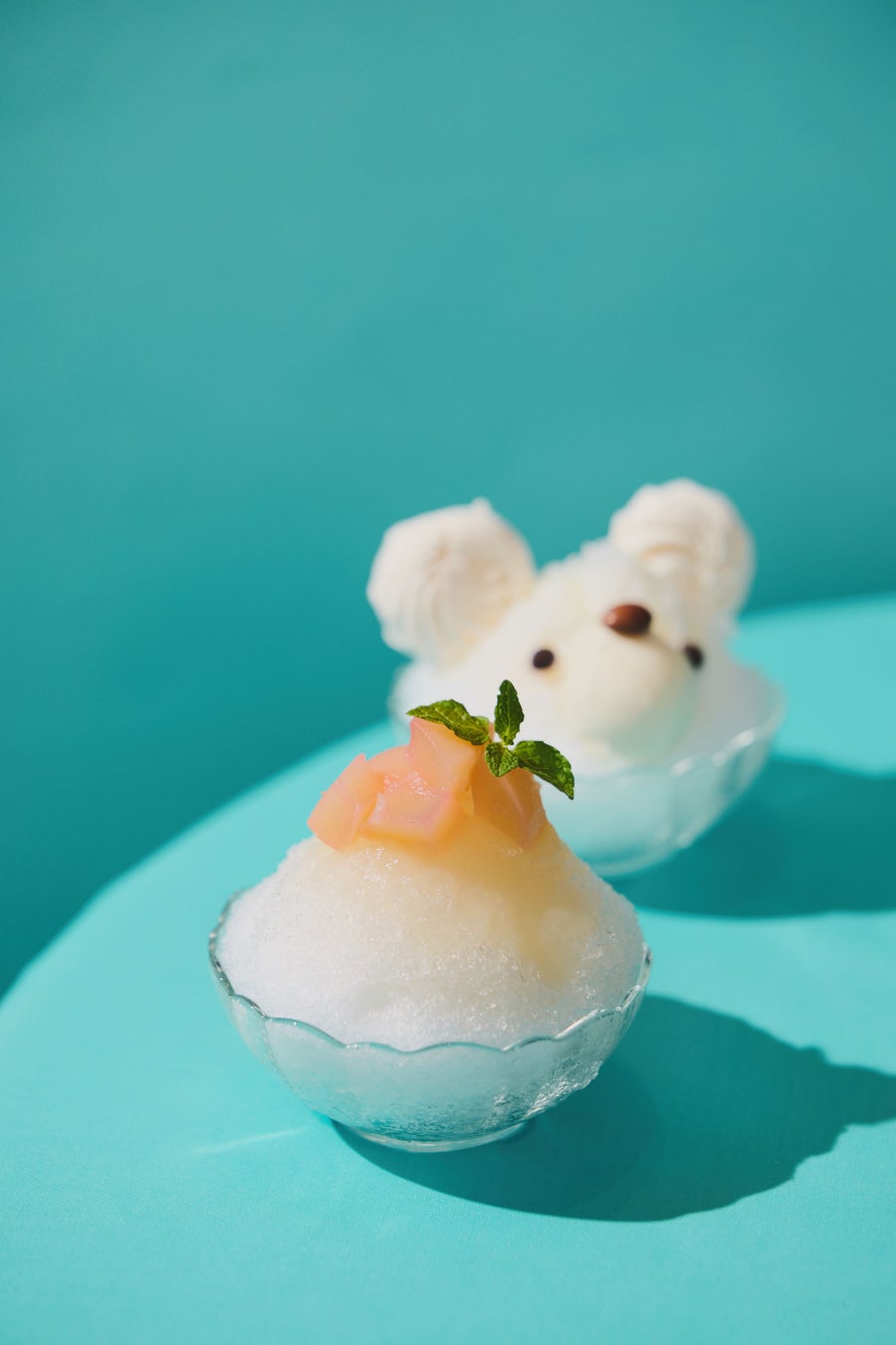 フレーバーが月替わりの“フルーツかき氷”と、通期提供のメレンゲや練乳でシロクマのようにデコレーションしたかき氷のいずれかよりお1人様1皿お選びいただけます。