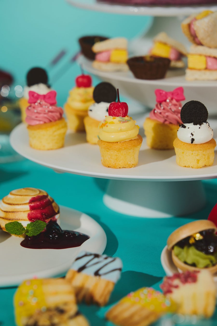 そのほか、同じく季節ごとにフレッシュフルーツを変更する「季節のショートケーキ」や、夏祭りなどからインスピレーションを受けた和スイーツ、カラフルな韓国スイーツ「レインボーケーキ」、アイスクリームをメレンゲで包み、ゲストの目の前で表面を炙って仕上げる「ベイクドアラスカ」など、バラエティに富んだスイーツを心ゆくまでお楽しみいただけます。