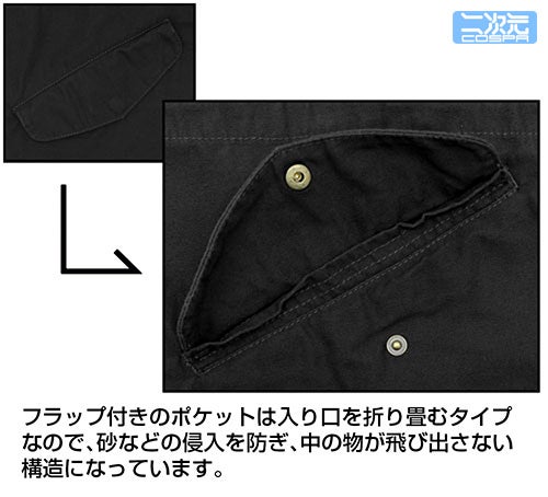・フラップ付きのポケットは入り口を折り畳むタイプなので、砂などの進入を防ぎ、中の物が飛び出さない構造になっています。