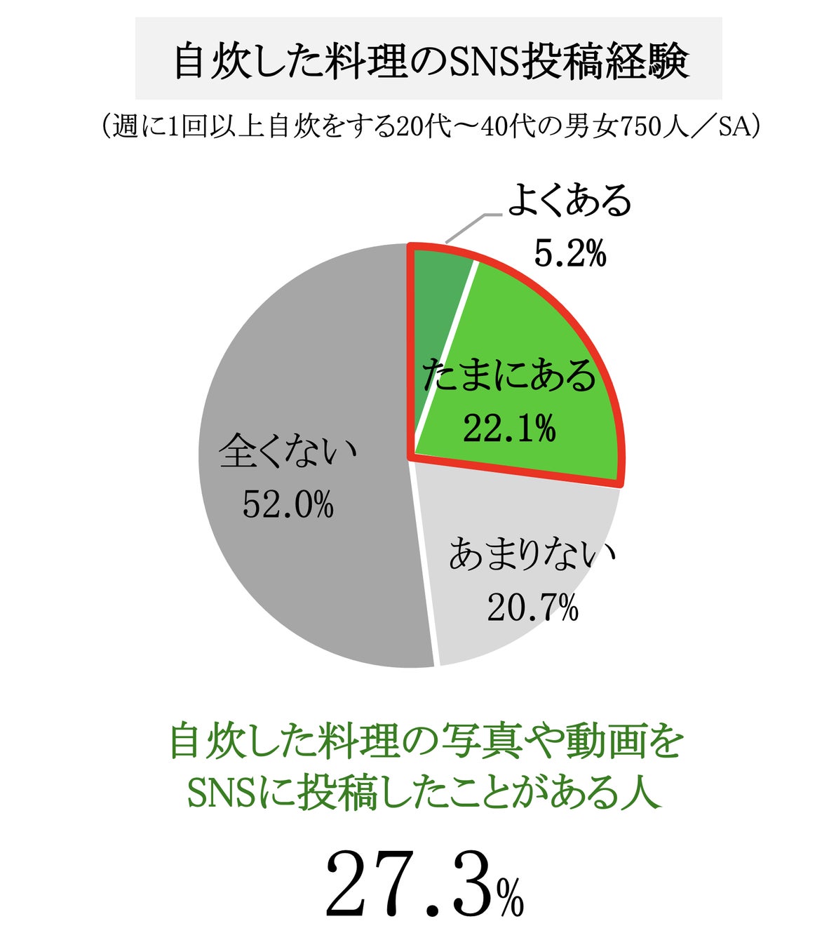 -およそ4人に1人が、自炊した料理を写真や動画に撮って誰かに送ったり、SNSに投稿したことがある。