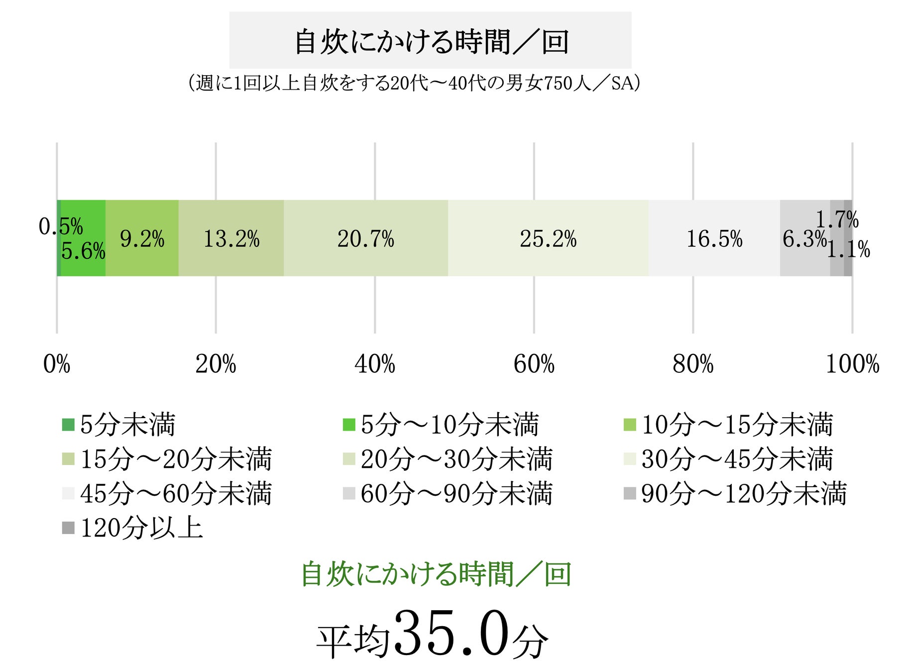 週に1回以上自炊をする人に対して、自炊にかける時間を聞いたところ、1回に平均35.0分という結果に。
