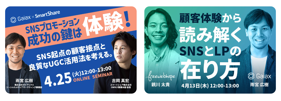 生活者リサーチを基点に企業のマーケティング活動を支援するクロス・マーケティング社と、企業のSNS戦略の上流から下流まで一気通貫で支援するガイアックスの知見やノウハウを持ち寄り、皆様のビジネスに活かせるお話をお伝えします。