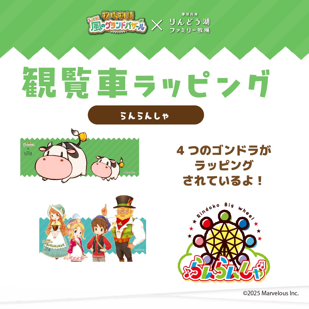 那須興業株式会社(栃木県那須町/代表取締役社長:林 沙紀)が運営する「那須高原りんどう湖ファミリー牧場」(以下、「りんどう湖ファミリー牧場」という)は、「牧場物語」シリーズ最新作『牧場物語 Let’s!風のグランドバザール』とのコラボ企画を2025年8月23日(土)から2025年10月31日まで開催します。