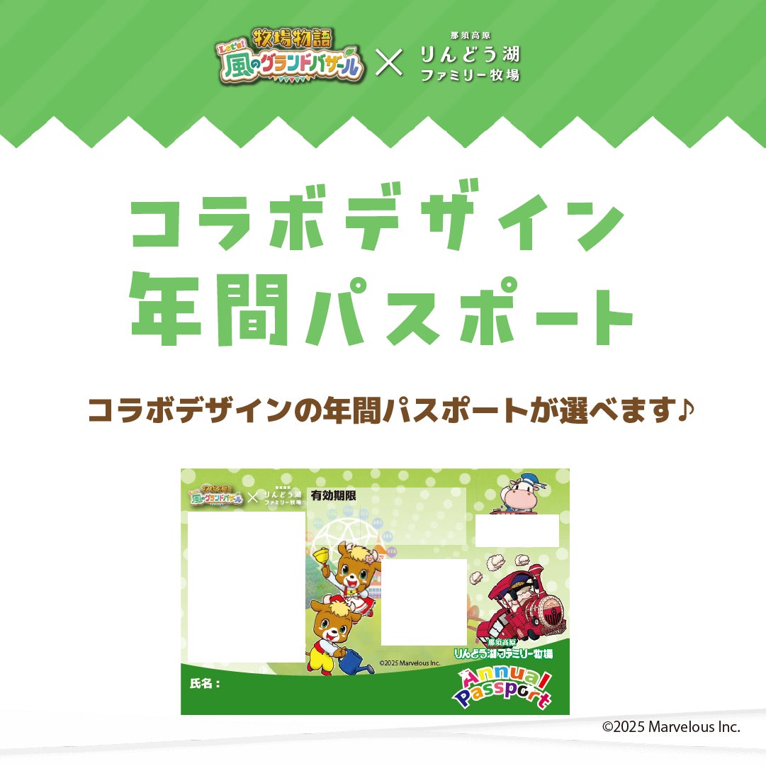 那須高原りんどう湖ファミリー牧場の年間パスポートが今だけコラボデザインにてご購入いただけます。既に年間パスポートを所持している方は再発行(有料500円/1枚)のお手続きも可能です。