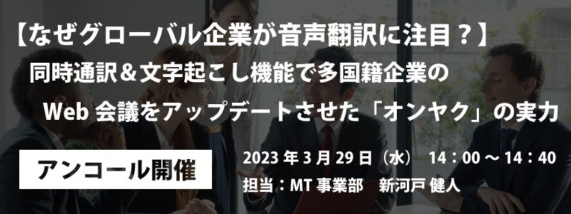 AI自動翻訳のロゼッタ ウェビナー『【なぜグローバル企業が音声翻訳に注目?】同時通訳&文字起こし機能で多国籍企業のWeb会議をアップデートさせた「オンヤク」の実力』3月29日(水)開催