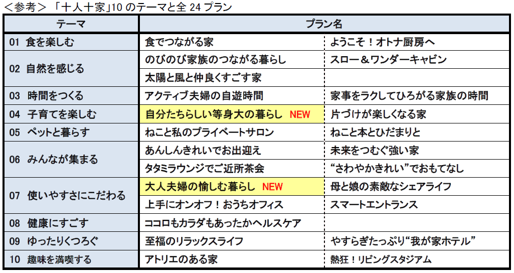 TOTO・DAIKEN・YKK AP共同リリース TDY3社によるライフスタイル提案“十人十家”新たに2プランを加えて、計24プランを展開