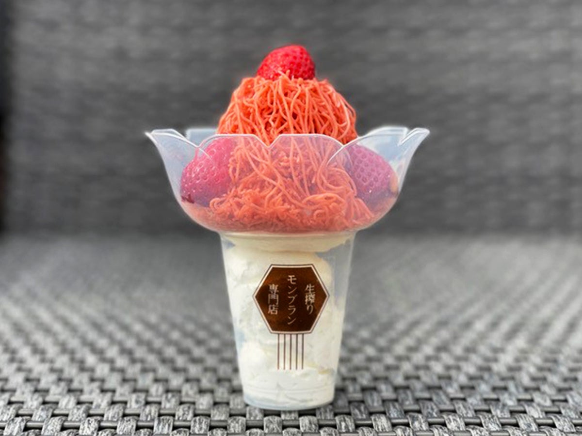 特製マロンクリームにあまりんを合わせたモンブラン。マスカルポーネと甘酸っぱい苺とのマリアージュが味わえます。