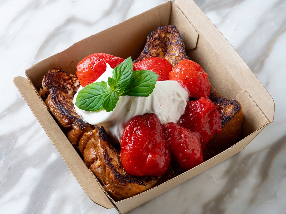 フレンチトーストにフレッシュなあまりんと、あまりんを使った自家製ソースをたっぷりかけて仕上げました。