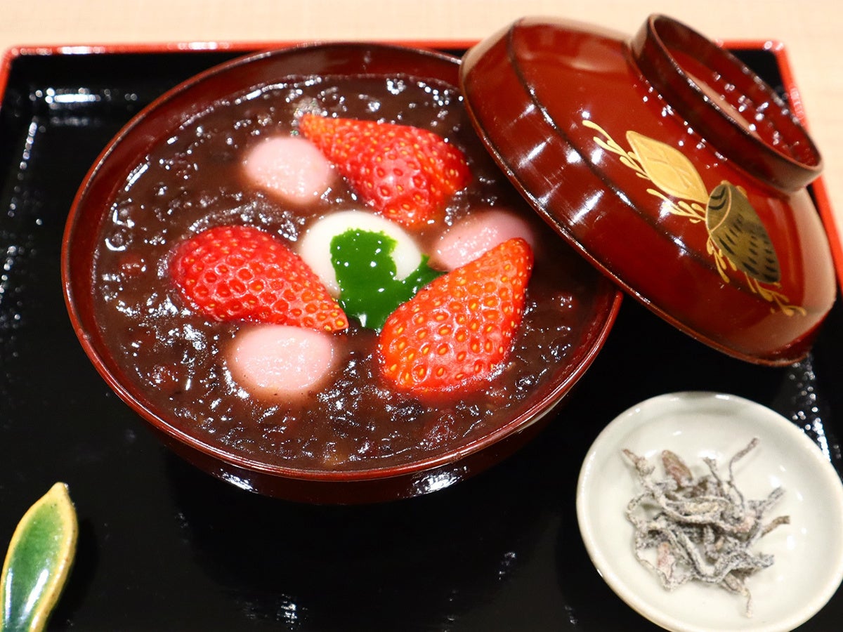 「あまりんいちごのいちご白玉ぜんざい(フレッシュいちごのせ)」968円