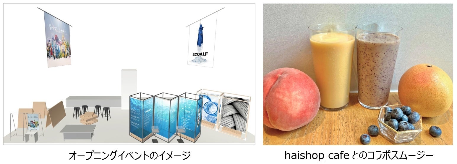 「ECOALF」と同日同じフロアにオープンする、“食”を通して社会課題の解決を目指す「haishop cafe(ハイショップカフェ)」より、両店舗の同日オープンを記念し、オーガニックの果物と蜂蜜を使用したコラボスムージー2種を9月15日(木)より1週間販売、「ECOALF」新作の「UPCYCLE B タンブラー」にて提供いたします。