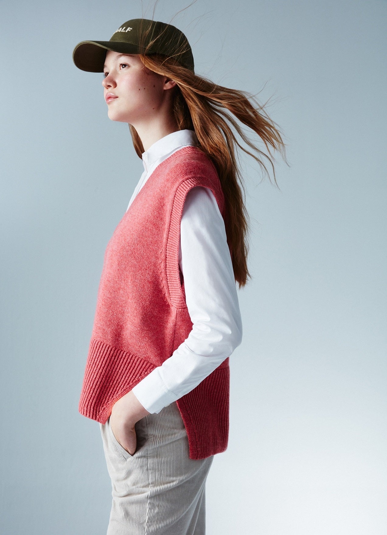 ウエアから雑貨まで、端材などによるリサイクルウールを使用したニットアイテムを多色展開。