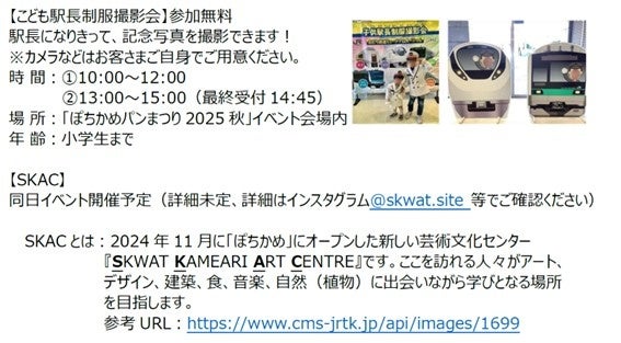 「ぽちかめパンまつり2025秋」では、地元で人気のパン屋を中心に全部で20もの店舗が出店し、東京都立農産高校の味噌カレープロジェクトとのコラボパンをはじめ、各店舗自慢のパンやスイーツを販売いたします。また、JR東日本協力の子ども駅長制服撮影会やワークショップなど、家族で楽しめるイベントも盛りだくさん!ぜひこの機会に奮ってご参加ください。